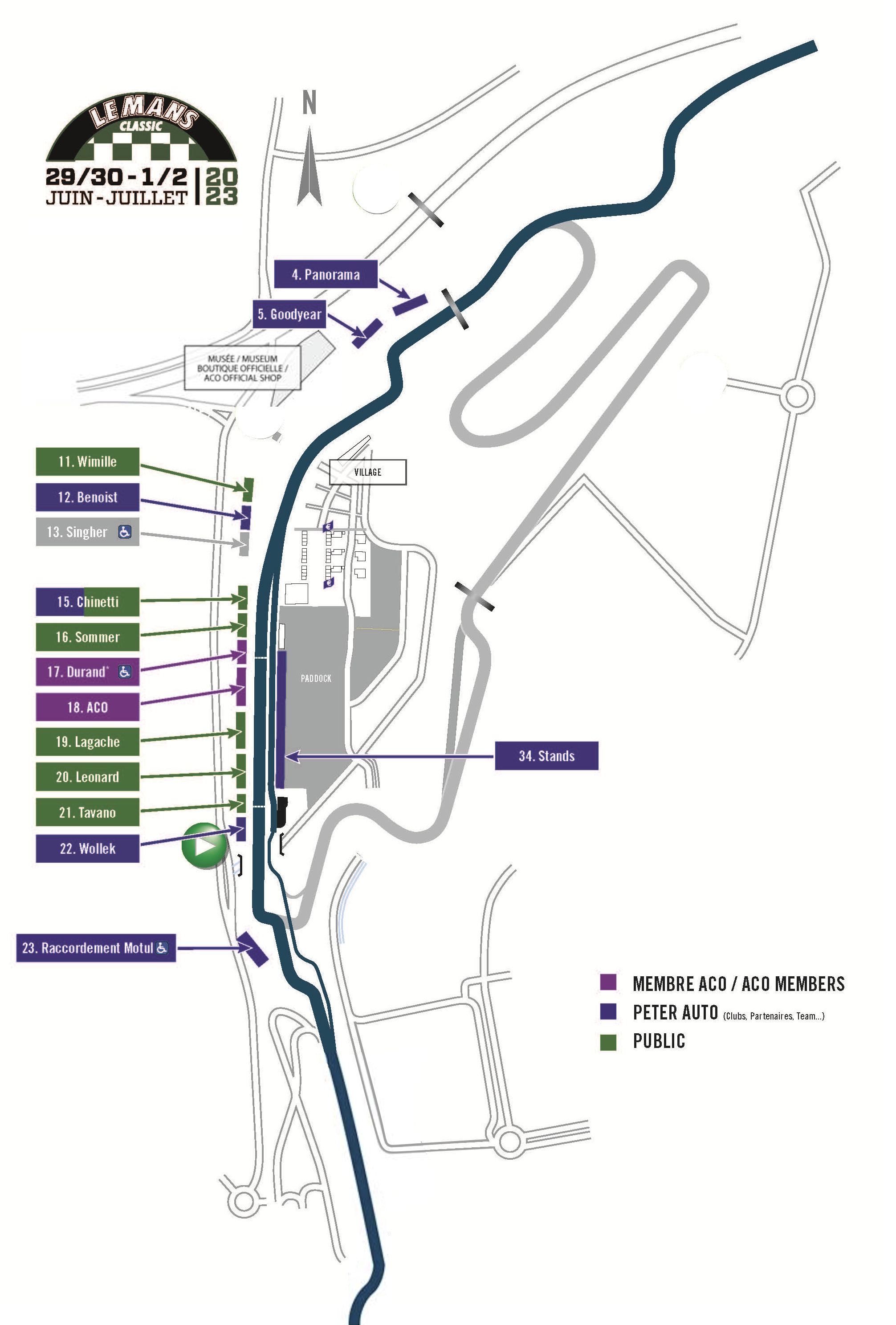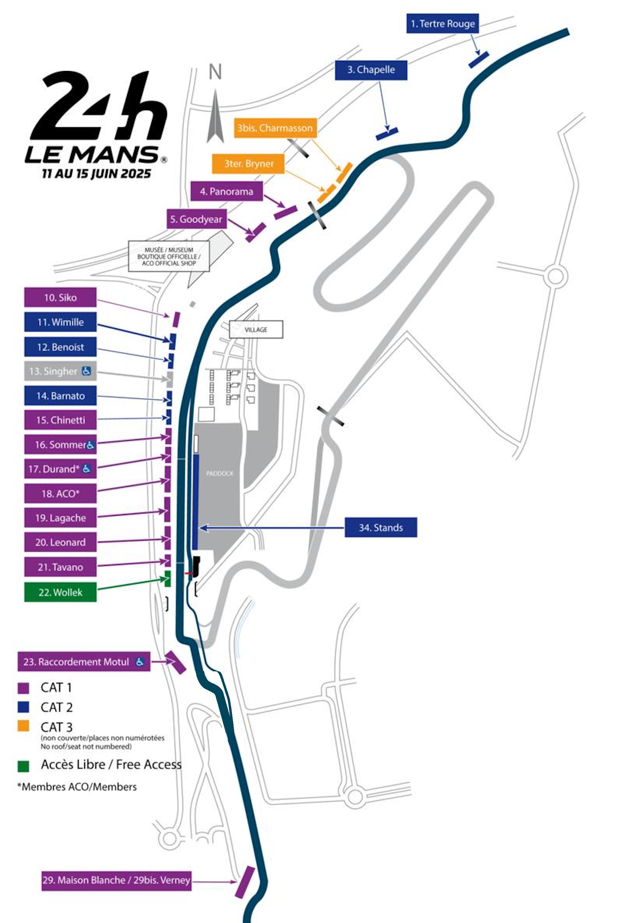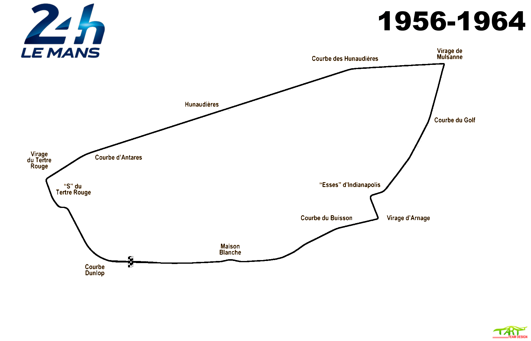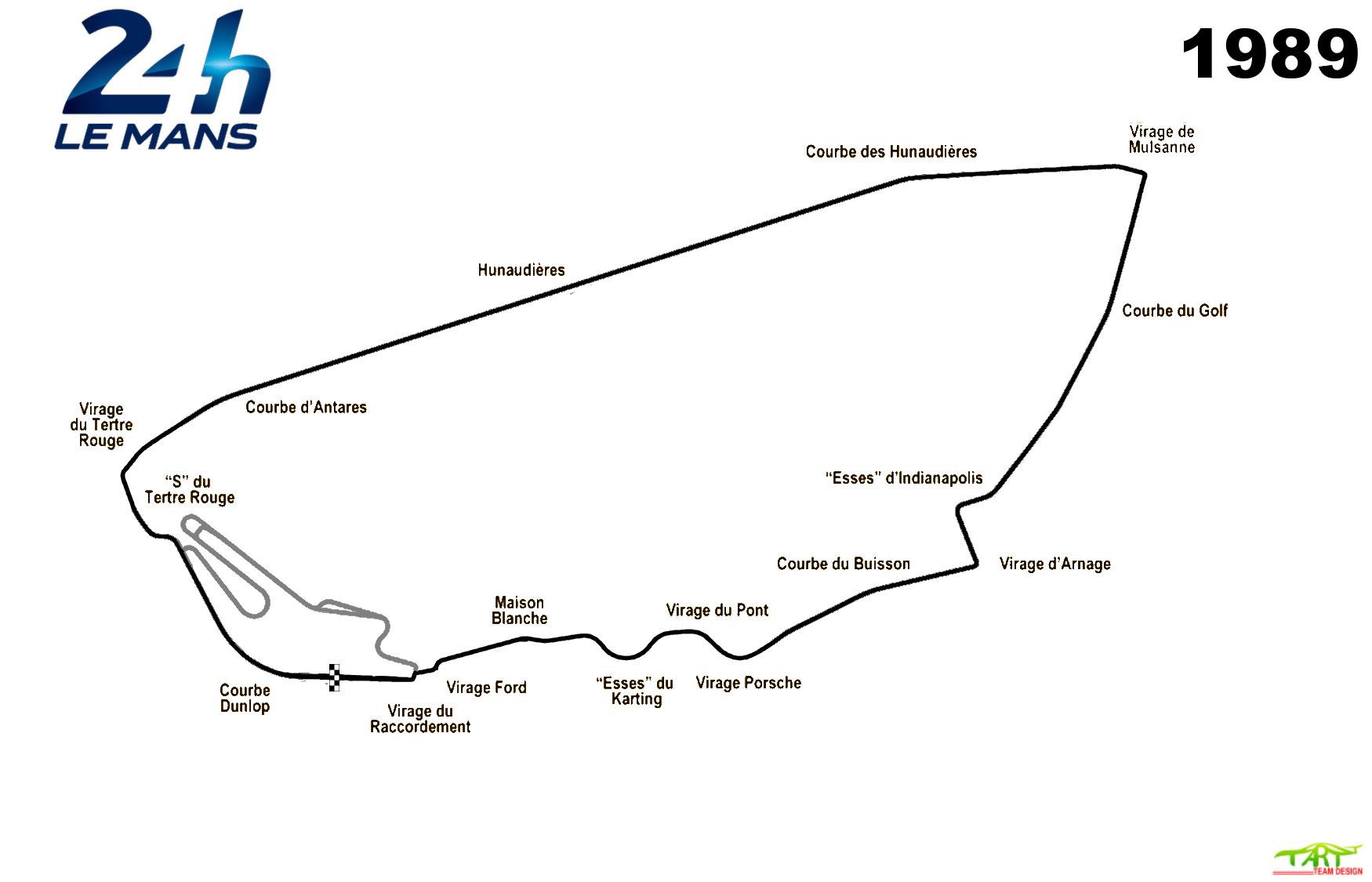 The circuit remains on public roads through the gently banked Indianapolis and Arnage corners before it diverges for the Porsche Curves, which bypass the old Maison Blanche section. It then ultimately returns to the Bugatti circuit at the Ford Chicane.