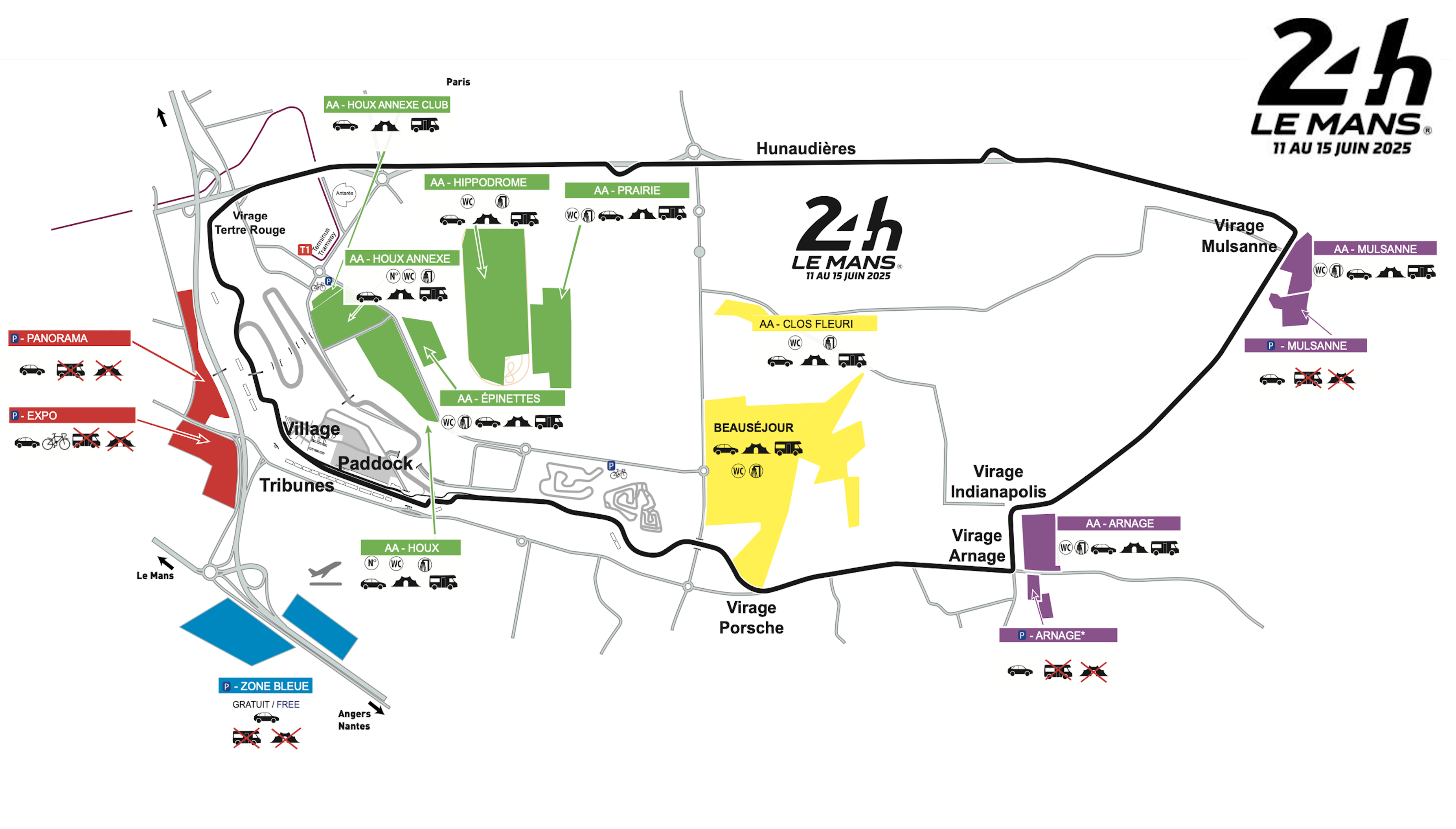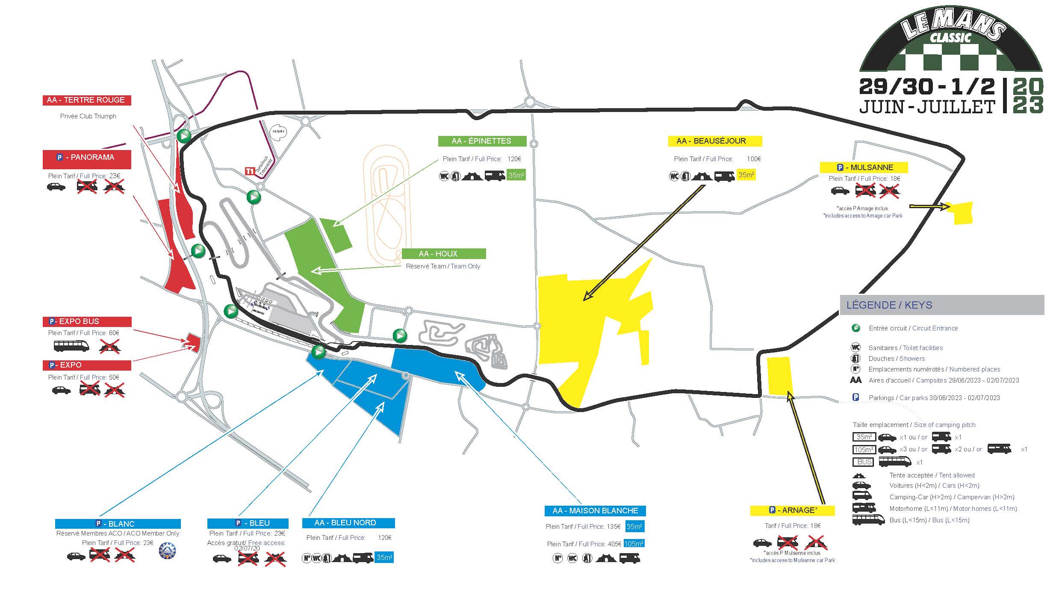 By Road is how most will travel to Le Mans. It is easily accessible via motorway from Calais, Caen, Le Havre, St Malo or Cherbourg if arriving from Britain by Ferry or Channel Tunnel. If travelling from elsewhere in France, the town is easily accessed via the E50, E402, E501 and E502 motorways. For those without a car (perhaps flying in to Paris from abroad) then it is possible to get to Le Mans either from Paris airport or Montparnasse station via the train. Once in Le Mans itself, travel to the circuit is easy thanks to the regular tram and bus services.