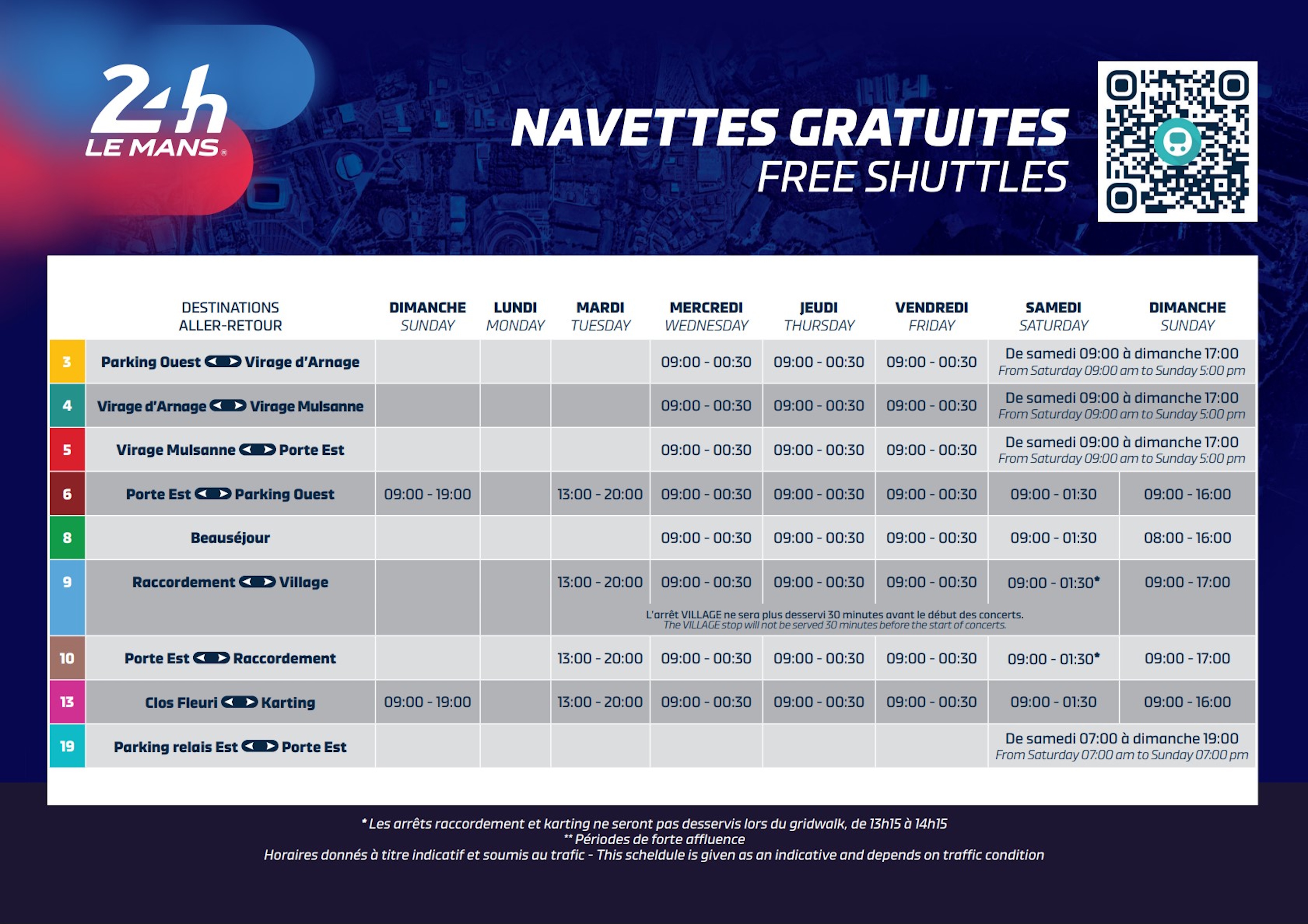 The public sections of the track differ significantly from the permanent circuit, particularly when compared to the Bugatti Circuit, which is located within the Circuit de la Sarthe. Due to heavy traffic in the area, the public roads are not as smooth or well-maintained. They also provide less grip because of the absence of soft-tyre rubber deposited by racing cars, although this primarily affects only the first few laps of the race. The roads are closed just a few hours before practice sessions and the race, reopening almost immediately after the race concludes. Each year, workers must set up and take down safety barriers for the public sections.