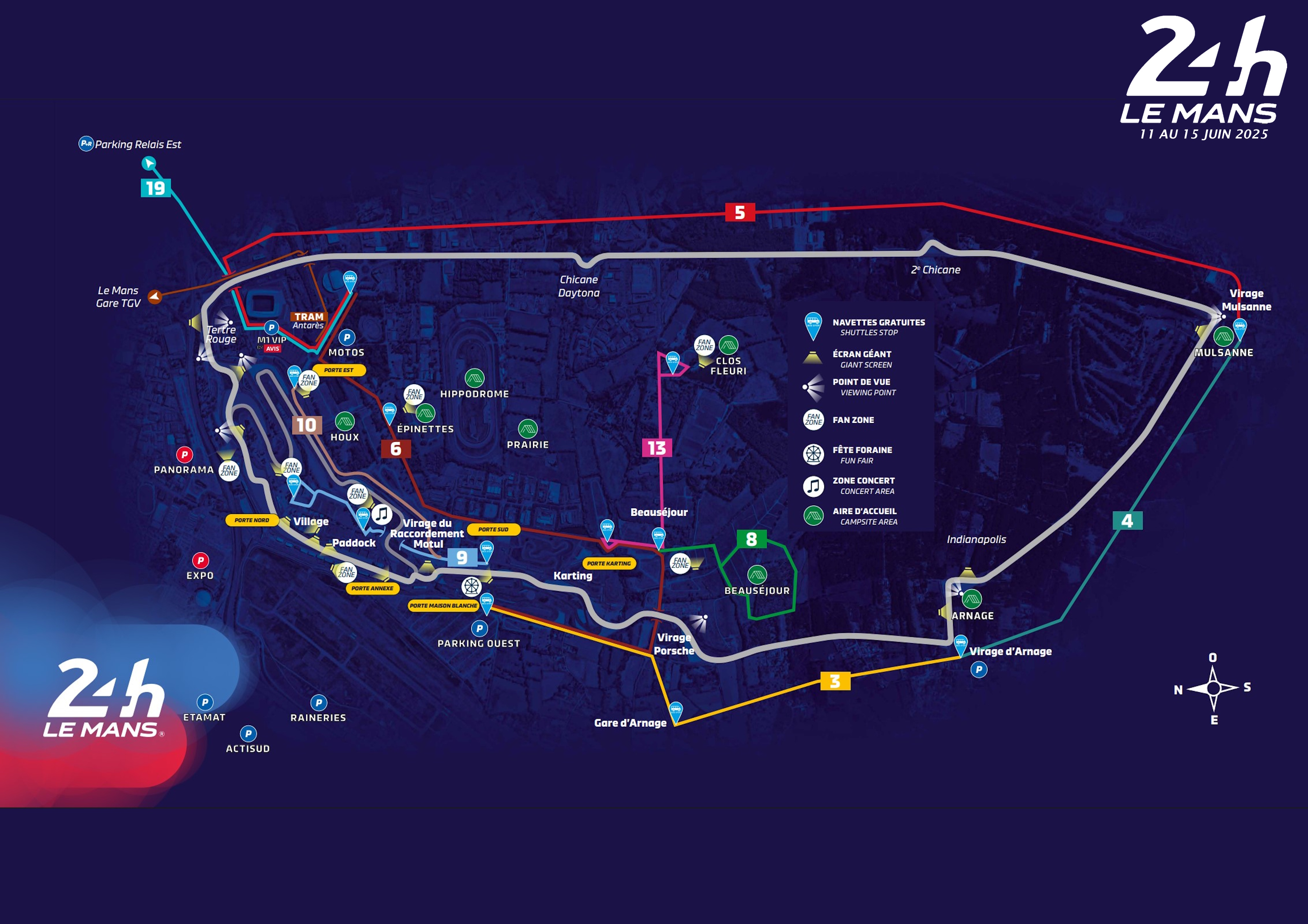 The Circuit de la Sarthe is located on the edge of the town of Le Mans, in Maine, westenr France. The nearest international airport is Tours Val de Loire Airport, around an hours drive to the south-east. Paris and its international airports is 150 miles to the north, approximately a 2.5 hours drive.