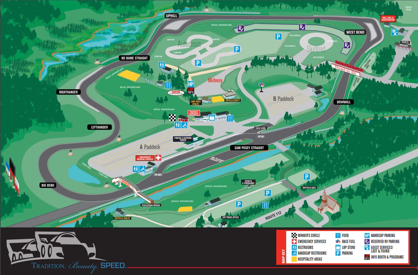 General parking is free during major spectator events. Free parking is located in the Outfield at the Outfield Entrance on Lime Rock Road or Light’s Field at the Main Entrance on White Hollow Road. During Race Days, free golf cart shuttles run on a continuous loop for those who need a lift from the parking areas. Handicapped Parking is available in the Infield for special permitted vehicles.