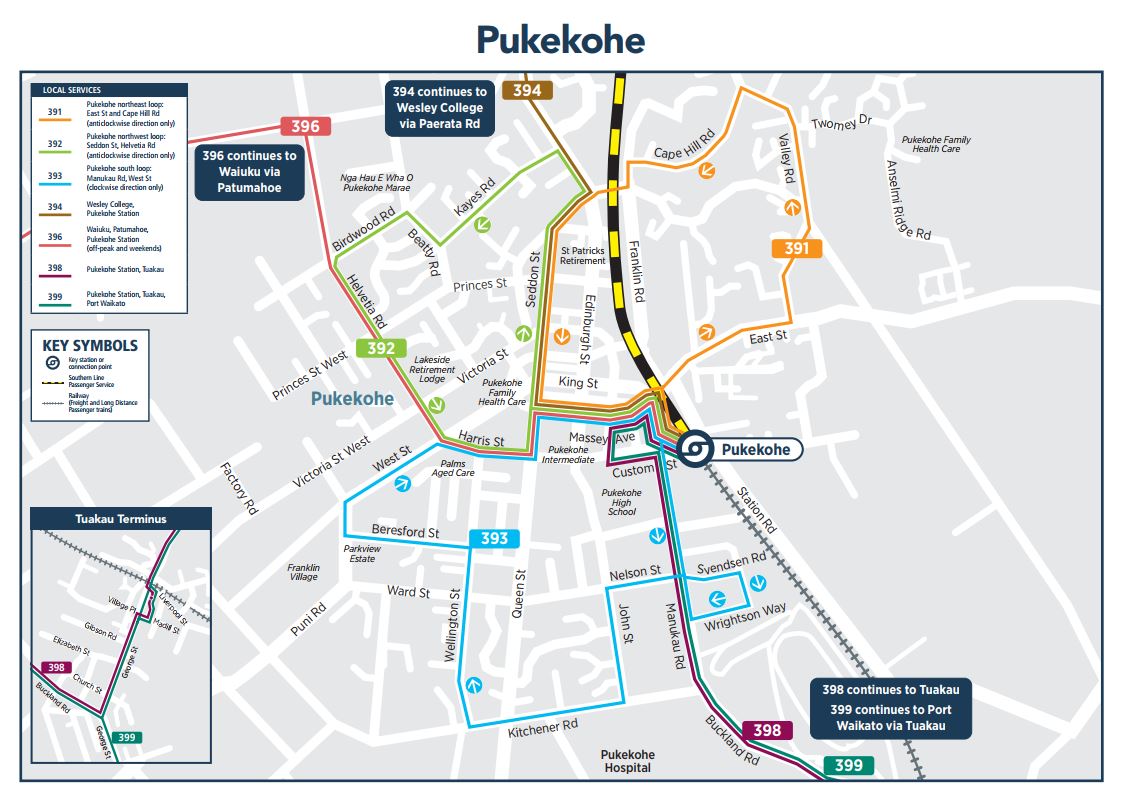 Mobility: A Mobilty Shuttle will operate for public transport users in Pukekohe for assistance if required from two locations: Glasgow Rd, Pukekohe to meet with Northern Busway services and Station Rd adjacent to the train station for train users Mobility Shuttles will operate from the first scheduled train until the last scheduled train departs from Pukekohe on event days. This also covers the duration of the special event bus services from the Northern Busway.